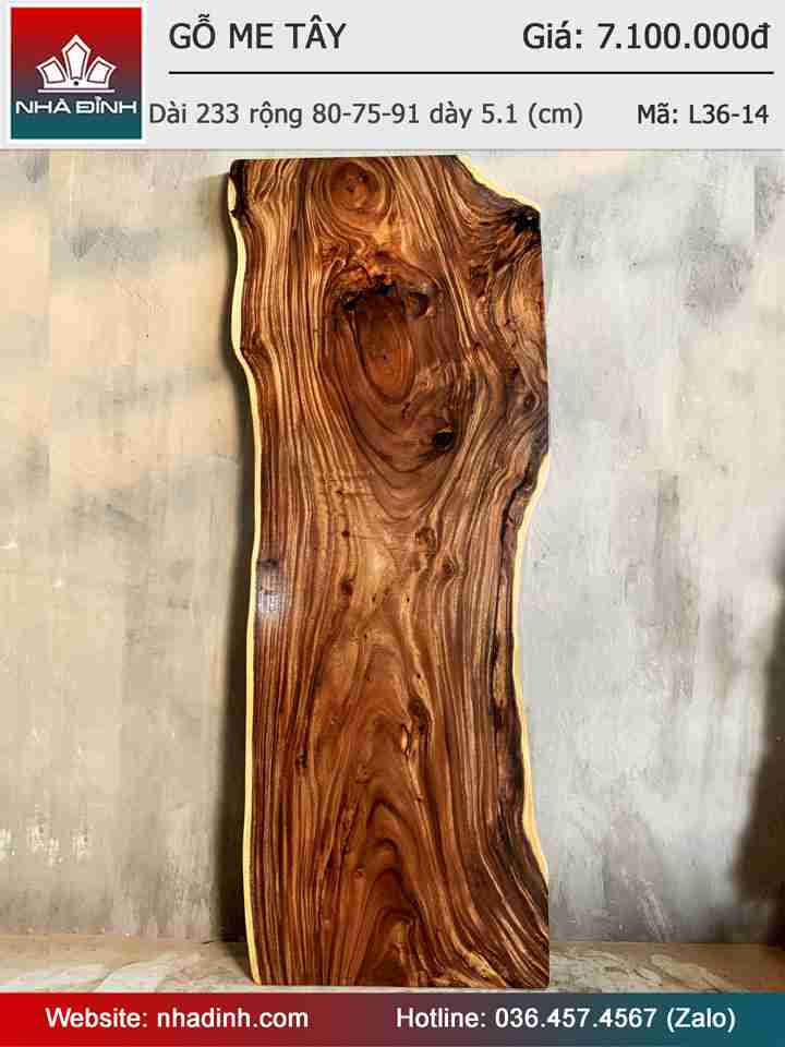 Mặt Bàn Gỗ Me Tây Nguyên Khối Dài 233 Rộng 80-75-91 Dày 5,1 (cm)
