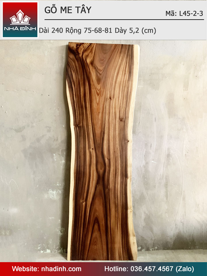 Mặt Bàn Gỗ Me Tây Nguyên Khối Dài 240 Rộng 75-68-81 Dày 5,2 (cm)