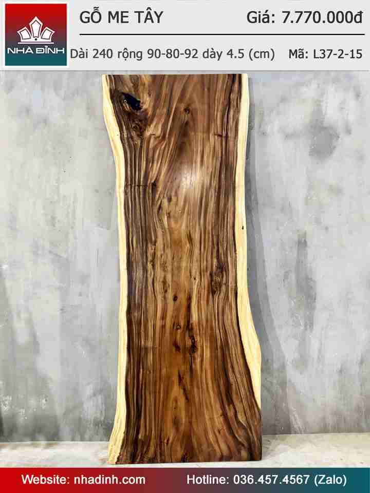Mặt Bàn Gỗ Me Tây Nguyên Khối Dài 240 Rộng 90-80-92 Dày 4,5 (cm)