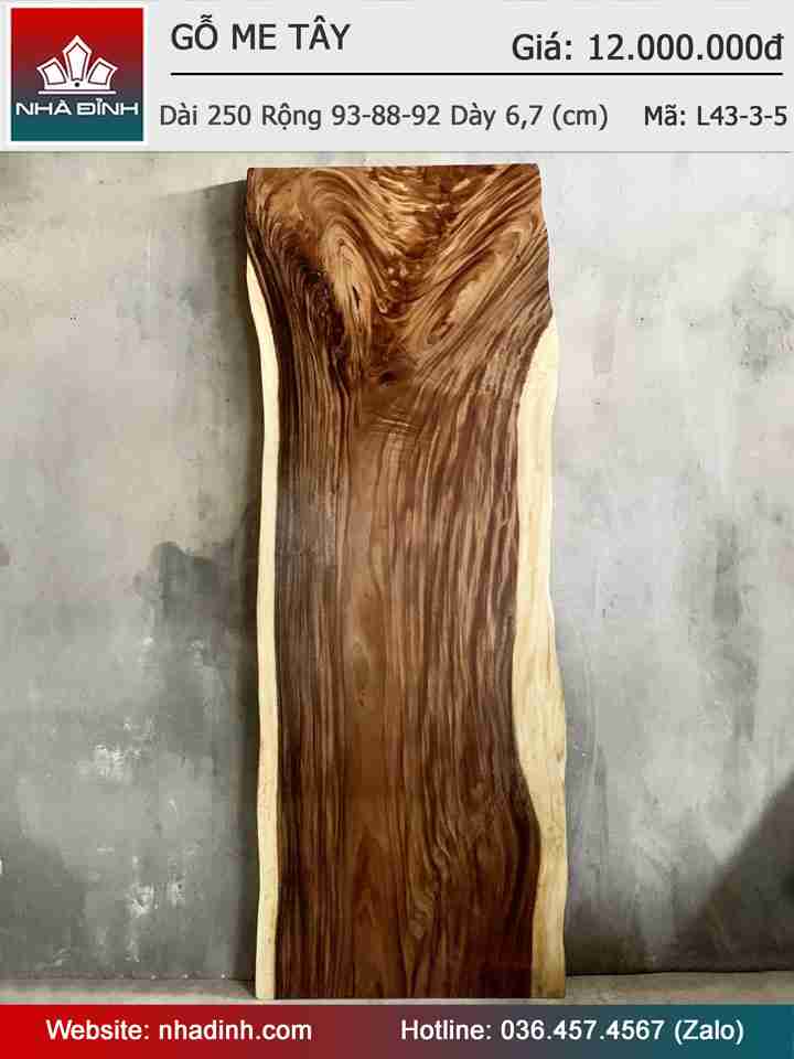 Mặt Bàn Gỗ Me Tây Nguyên Khối Dài 250 Rộng 93-88-92 Dày 6,7 (cm)