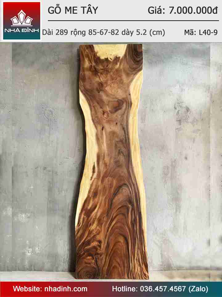 Mặt Bàn Gỗ Me Tây Nguyên Khối Dài 289 Rộng 85-67-82 Dày 5,2 (cm)