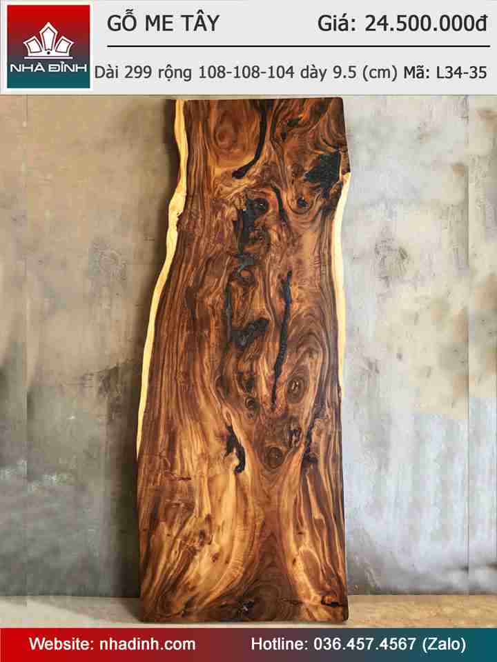 Mặt Bàn Gỗ Me Tây Nguyên Khối Dài 299 Rộng 108-108-104 Dày 9,5 (cm)