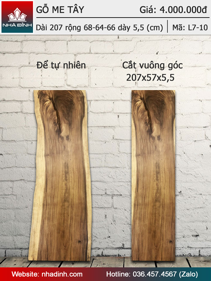 Mặt bàn gỗ Me Tây nguyên khối dài 2m07 rộng 68-64-66,5 dày 5,5 (cm)