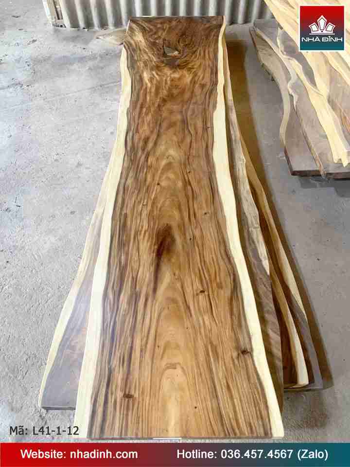 Mặt Bàn Gỗ Me Tây Nguyên Khối Dài 387 Rộng 82-78-100 Dày 5,6 (cm)