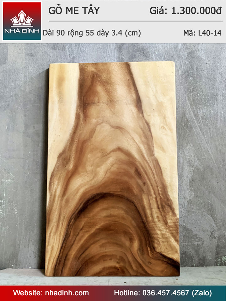 Mặt Bàn Gỗ Me Tây Nguyên Khối Dài 90 Rộng 55 Dày 3,4 (cm)