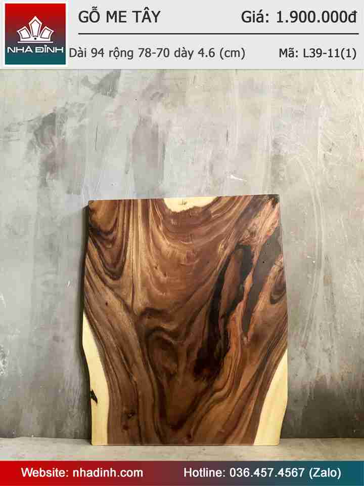 Mặt Bàn Gỗ Me Tây Nguyên Khối Dài 94 Rộng 78-70 Dày 4,6 (cm)
