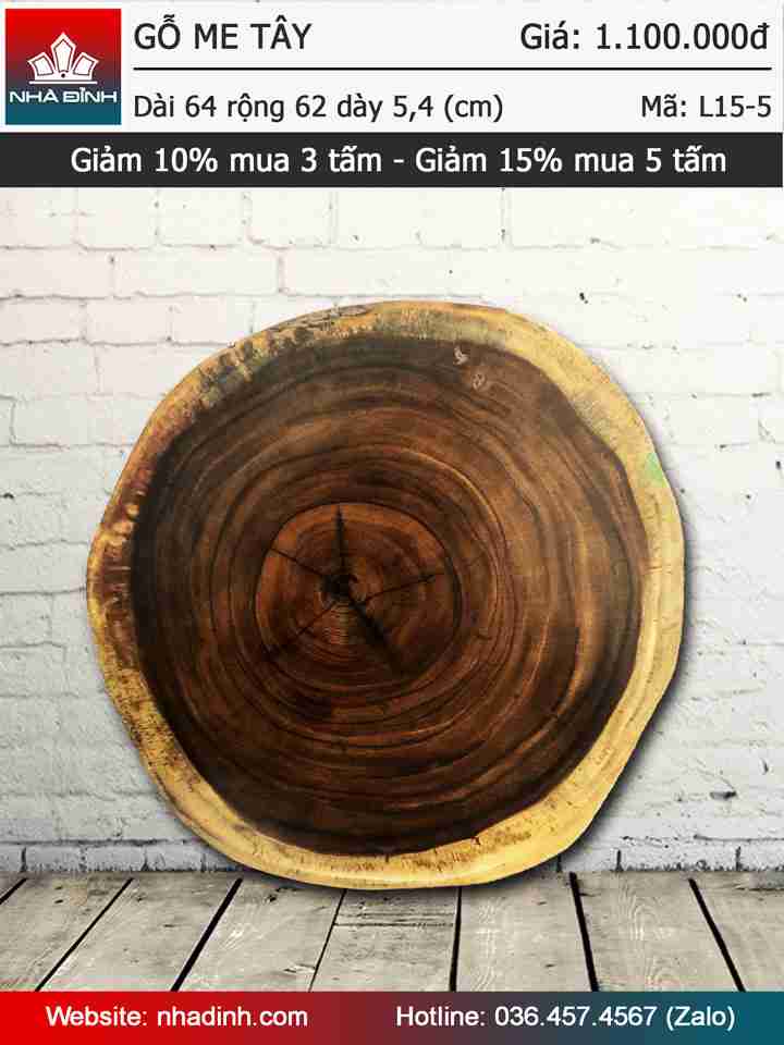 Mặt bàn gỗ Me Tây nguyên khối đường kính 640-620 dày 54 (mm)