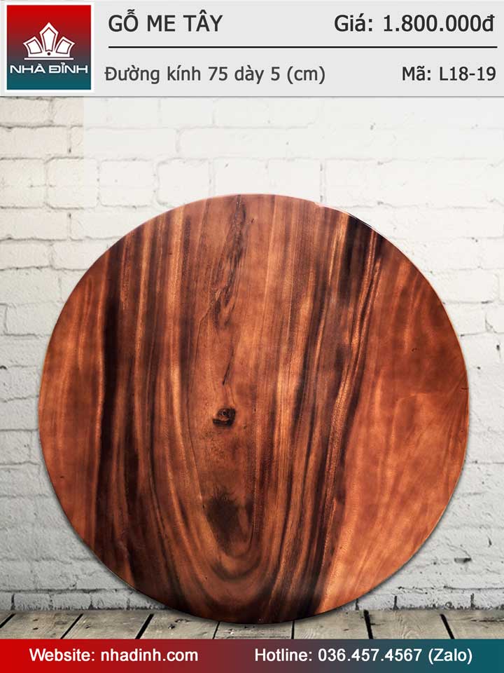 Mặt bàn gỗ Me Tây nguyên khối đường kính 75 dày 5 (cm)