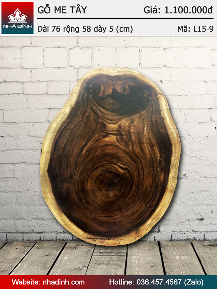 Mặt bàn gỗ Me Tây nguyên khối đường kính 760-580 dày 50 (mm)