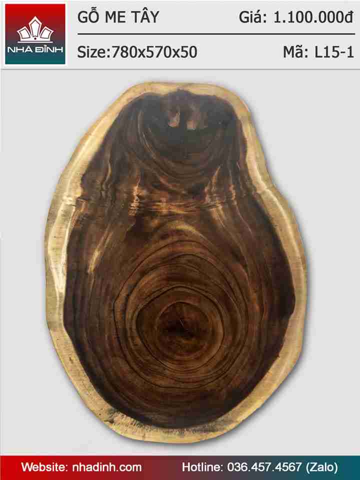 Mặt bàn gỗ Me Tây nguyên khối đường kính 780-570 dày 50 (mm)