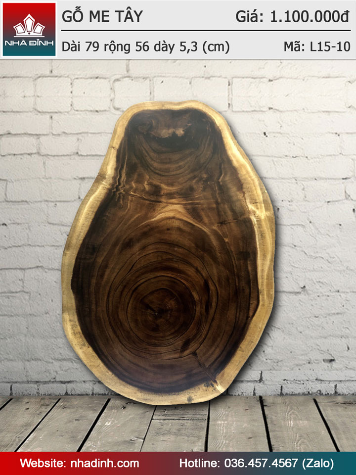 Mặt bàn gỗ Me Tây nguyên khối đường kính 790-560 dày 53 (mm)