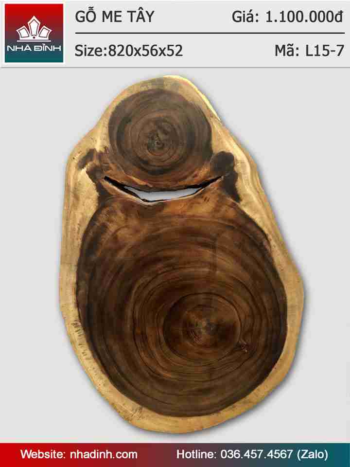 Mặt bàn gỗ Me Tây nguyên khối đường kính 820-560 dày 52 (mm)