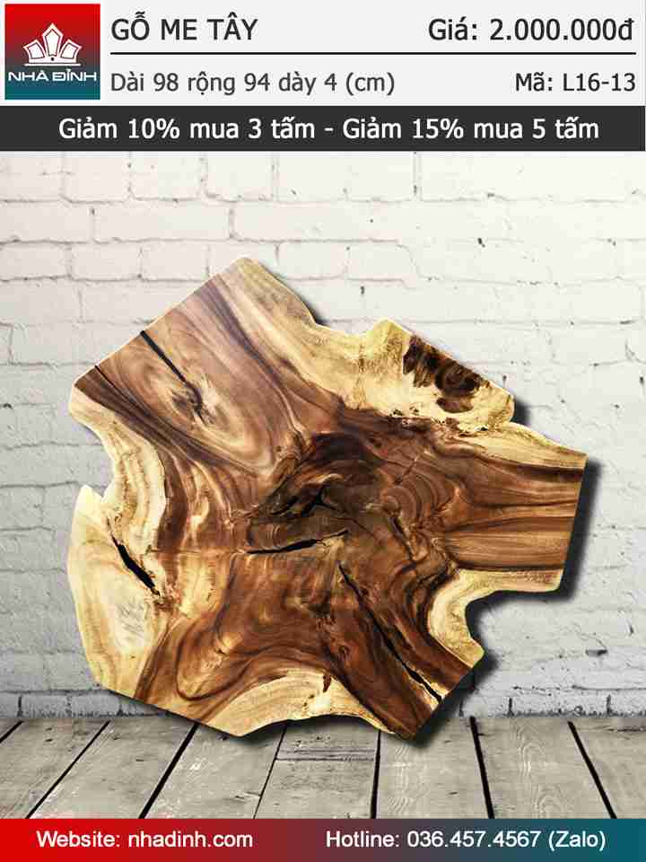 Mặt bàn gỗ Me Tây nguyên khối đường kính 980x940 dày 40 (mm)