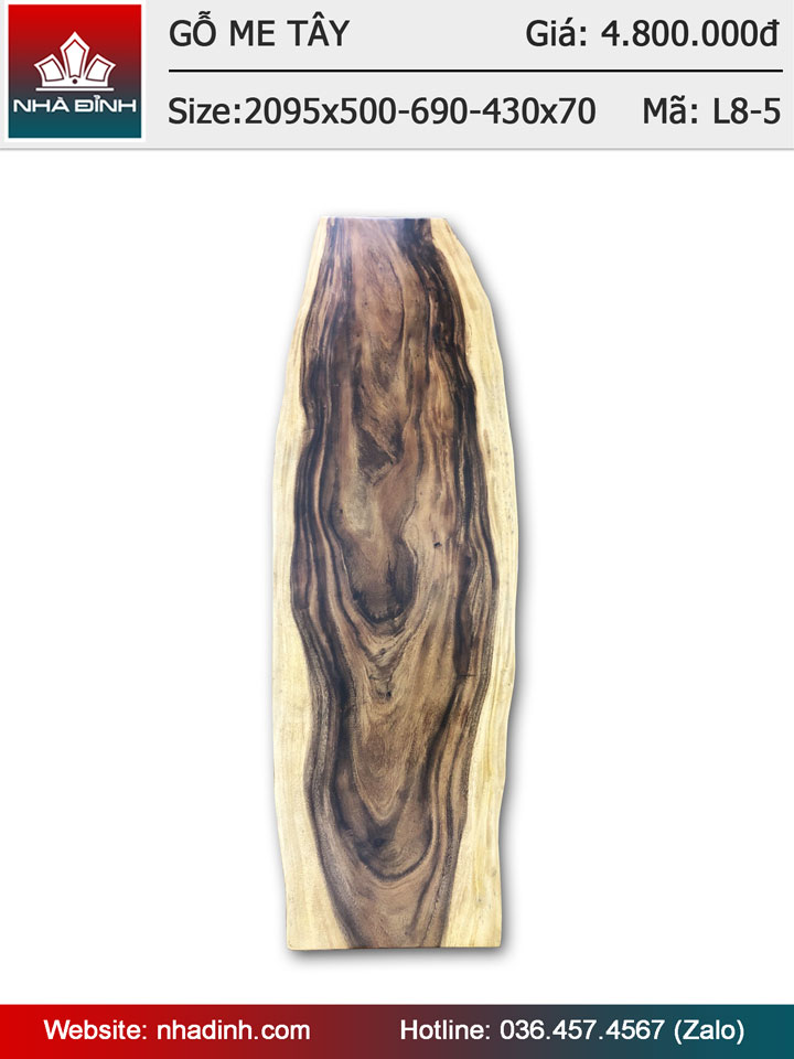 Mặt bàn gỗ Me Tây nguyên tấm dài 2m09 rộng 50-69-43 dày 7 (cm)