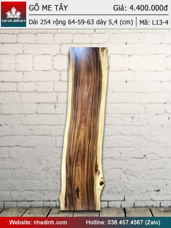 Mặt bàn gỗ Me Tây nguyên tấm dài 254 rộng 64-59-63 dày 5,4 (cm)