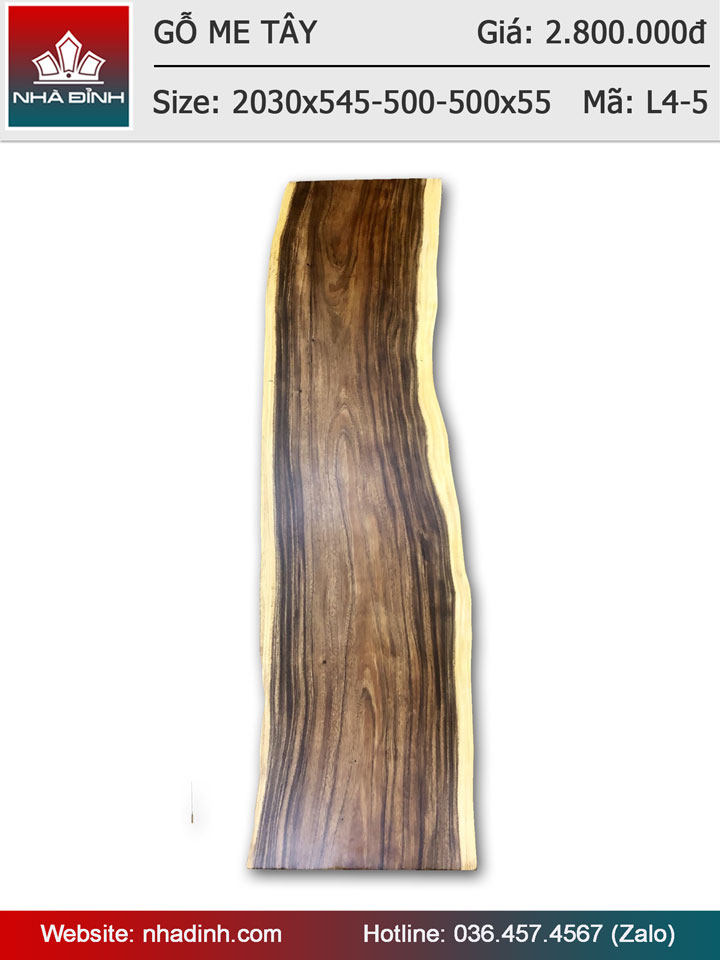 Mặt bàn gỗ Me Tây nguyên tấm dài 2m03 rộng 54,5-50-50 dày 5,5cm
