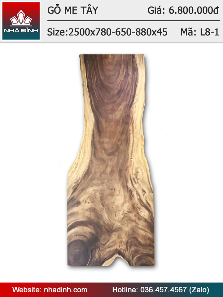 Mặt bàn gỗ Me Tây nguyên tấm dài 2m5 rộng 78-65-88 dày 4,5 (cm)