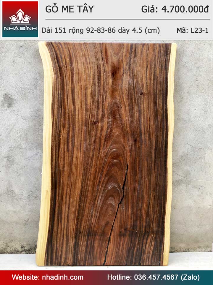 Mặt Bàn Nguyên Khối Gỗ Me Tây Dài 151 Rộng 92-83-86 Dày 4.5 (cm)