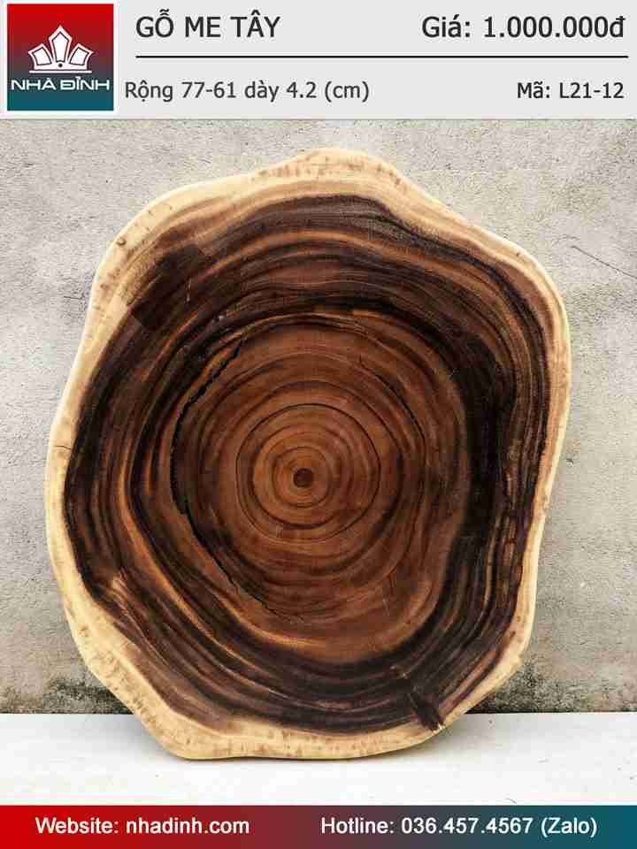 Mặt Bàn Sofa , Bàn Trà Gỗ Me Tây Nguyên Khối Rộng 77-61 Dày 4.2 (cm)