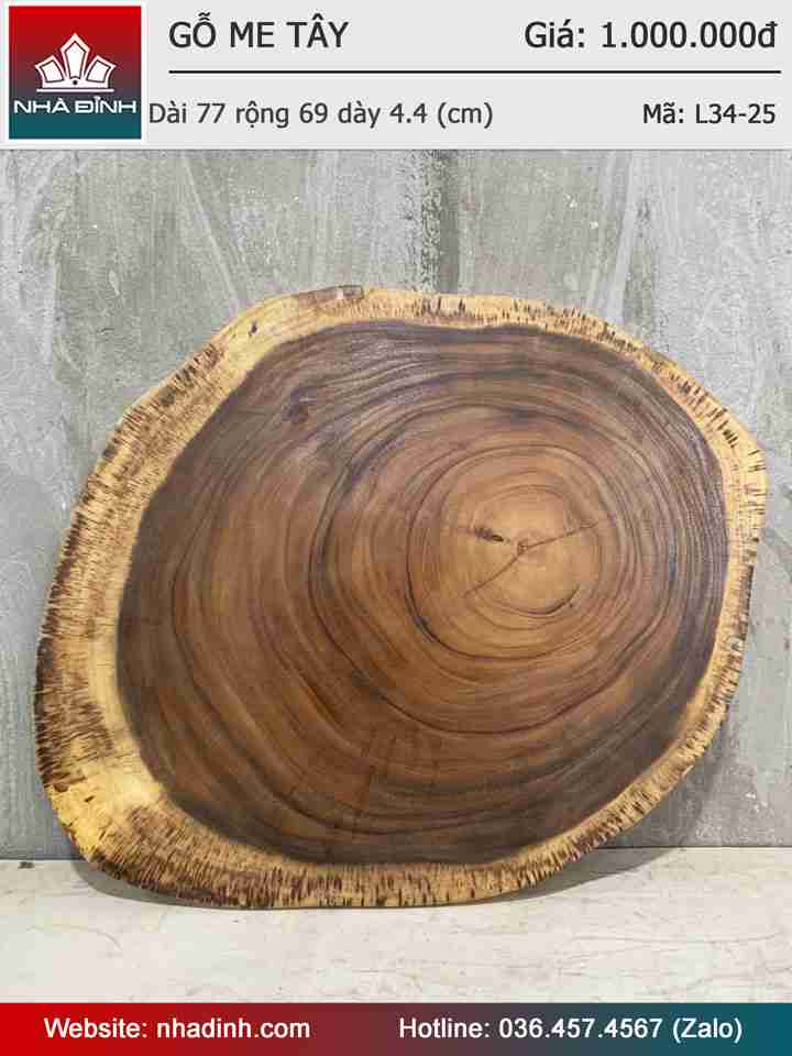Mặt Bàn Sofa Gỗ Me Tây Nguyên Khối Dài 77 Rộng 69 Dày 4.4 (cm)