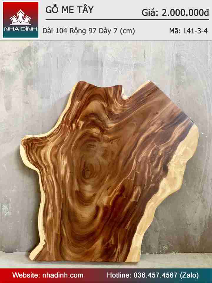 Mặt Bàn Sofa Gỗ Me Tây Nguyên Khối Dài 104 Rộng 97 Dày 7 (cm)