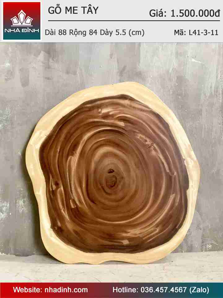 Mặt Bàn Sofa Gỗ Me Tây Nguyên Khối Dài 88 Rộng 84 Dày 5,5 (cm)