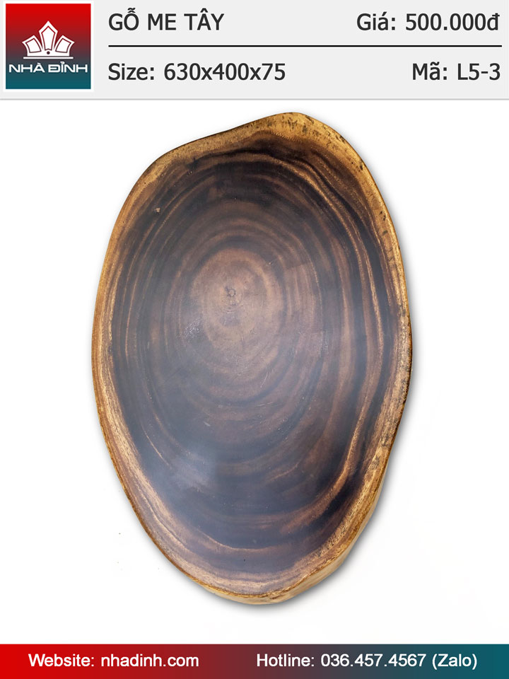 Mặt bàn sofa gỗ Me Tây nguyên khối đường kính 63x40 dày 7,5cm