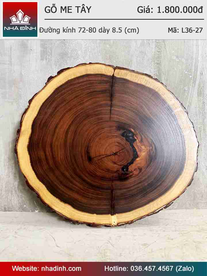 Mặt Bàn Sofa Gỗ Me Tây Nguyên Khối Đường Kính 72-80 Dày 8,5 (cm)