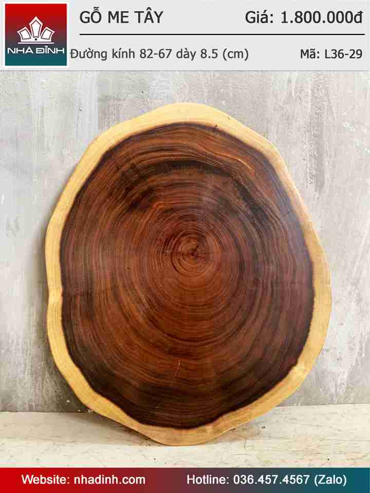 Mặt Bàn Thớt Gỗ Me Tây Đường Kính 82-67 Dày 8.5 (cm)