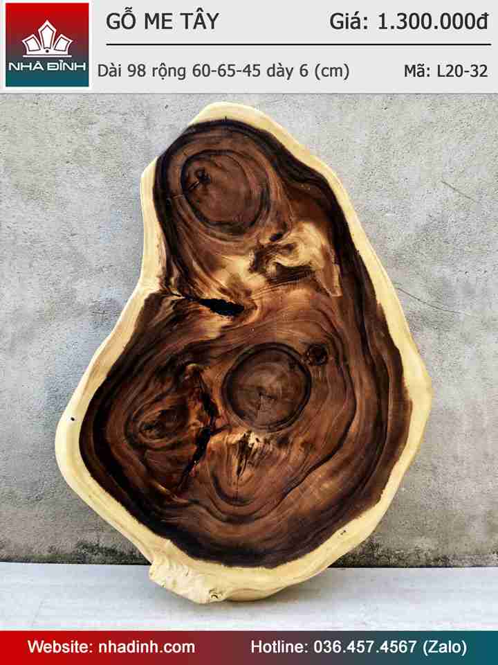 Mặt Bàn Trà Bàn Sofa Gỗ Me Tây Nguyên Khối Dài 98 Rộng 60-65-45 Dày 6 (cm)