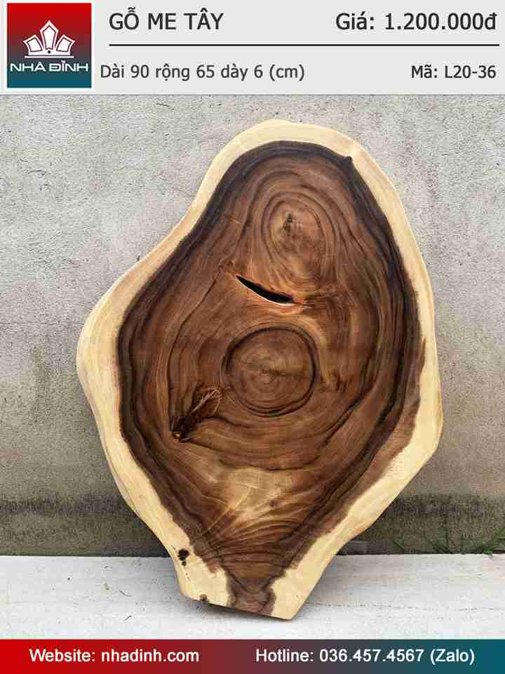 Mặt Bàn Trà Gỗ Me Tây Nguyên Khối Dài 90 Rộng 65 Dày 6 (cm)