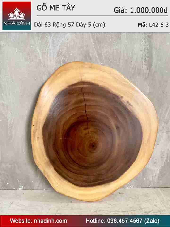 Mặt Bàn Trà Gỗ Me Tây Nguyên Khối Dài 63 Rộng 57 Dày 5 (cm)