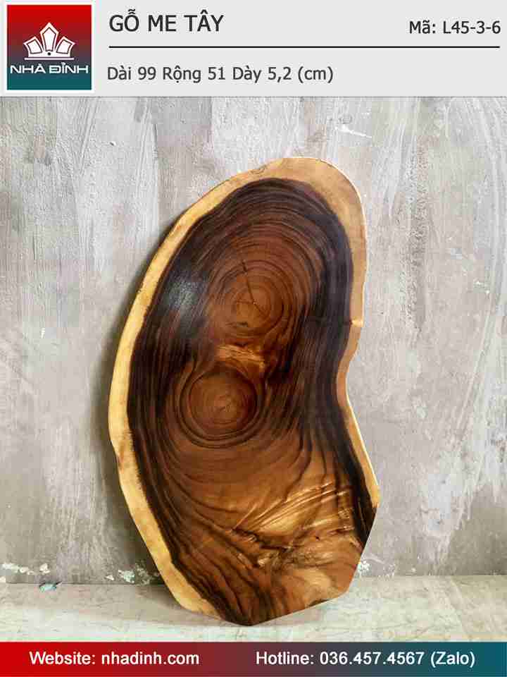 Mặt Bàn Trà Gỗ Me Tây Nguyên Khối Dài 99 Rộng 51 Dày 5,2 (cm)
