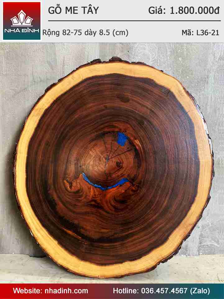 Mặt Bàn Trà Gỗ Me Tây Nguyên Khối Rộng 82-75 Dày 8,5 (cm)