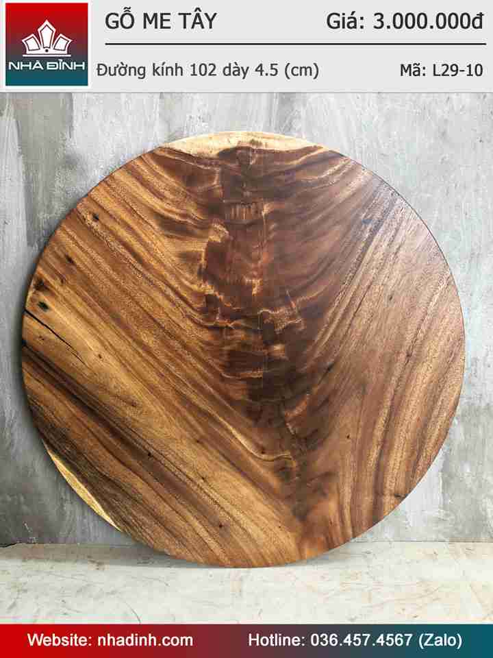 Mặt Bàn Tròn Gỗ Me Tây Nguyên Khối Đường Kính 102 Dày 4.5 (cm)