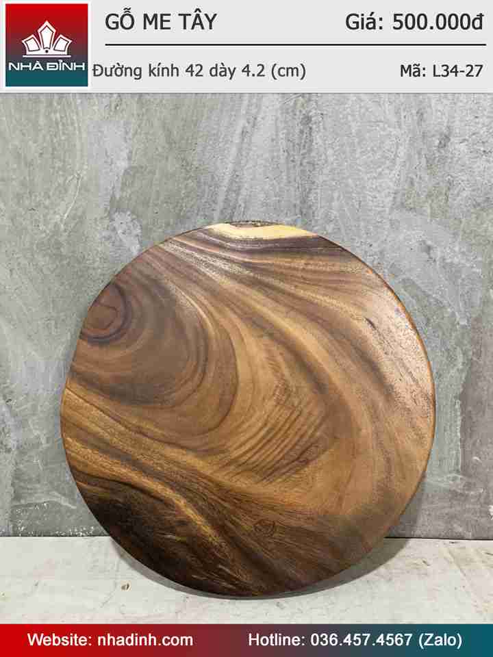 Mặt Bàn Tròn Gỗ Me Tây Nguyên Khối Đường Kính 42 Dày 4.2 (cm)