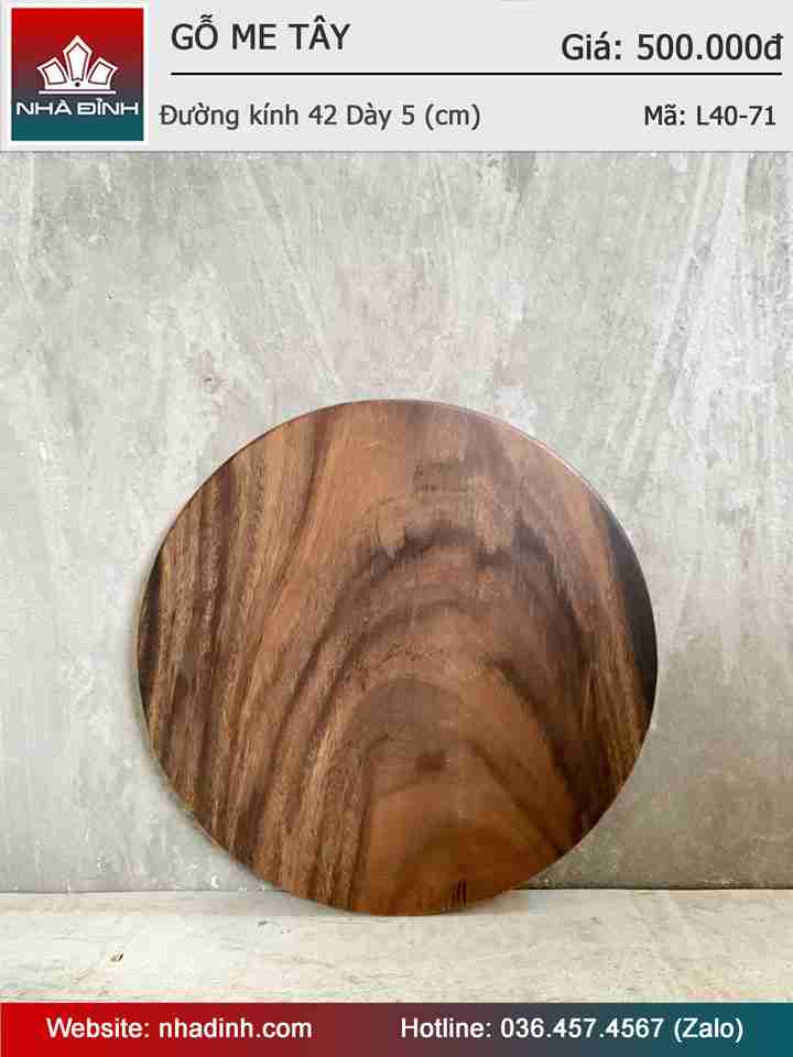 Mặt Bàn Tròn Gỗ Me Tây Nguyên Khối Đường Kính 42 Dày 5 (cm)