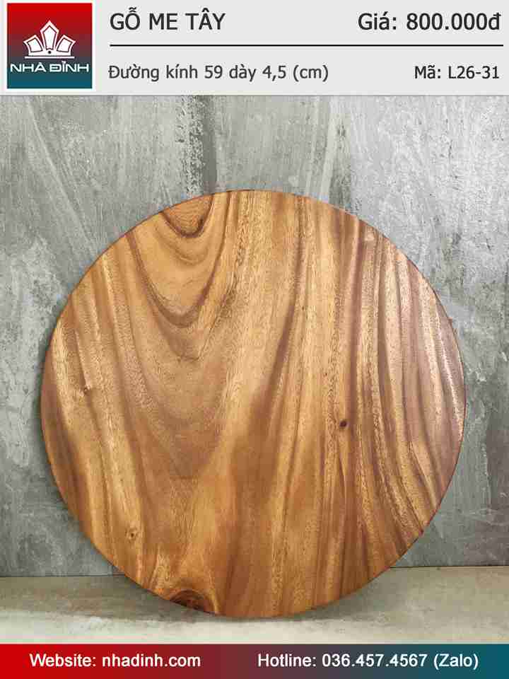 Mặt Bàn Tròn Gỗ Me Tây Nguyên Khối Đường Kính 59 Dày 4,5 (cm)