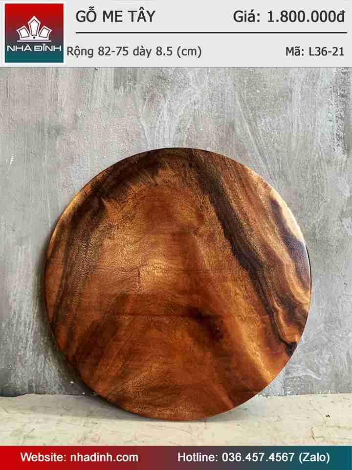 Mặt Bàn Tròn Gỗ Me Tây Nguyên Khối Đường Kính 62 Dày 4,2 (cm)