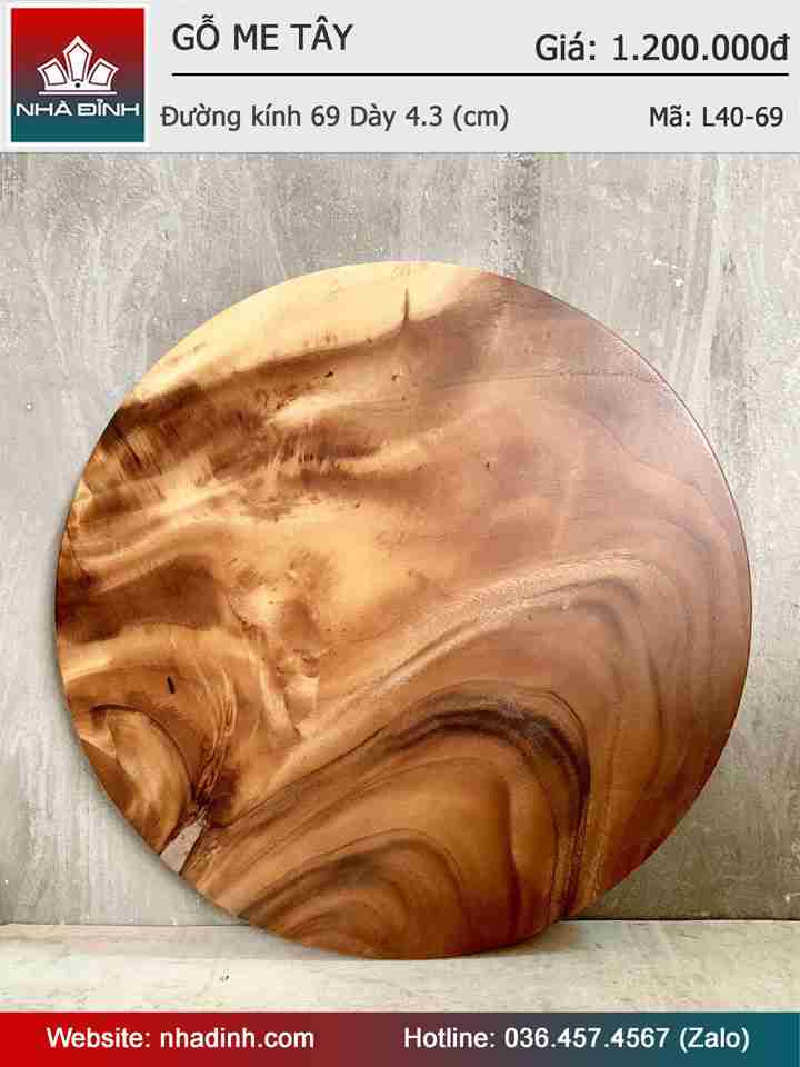 Mặt Bàn Tròn Gỗ Me Tây Nguyên Khối Đường Kính 69 Dày 4,3 (cm)