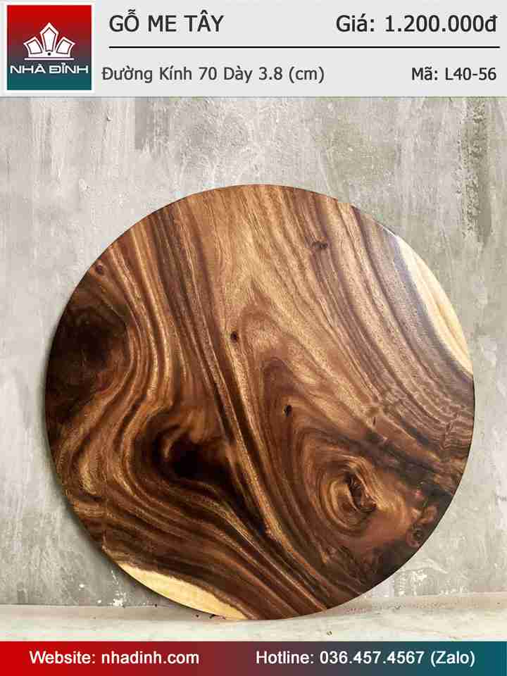 Mặt Bàn Tròn Gỗ Me Tây Nguyên Khối Đường Kính 70 Dày 3,8 (cm)