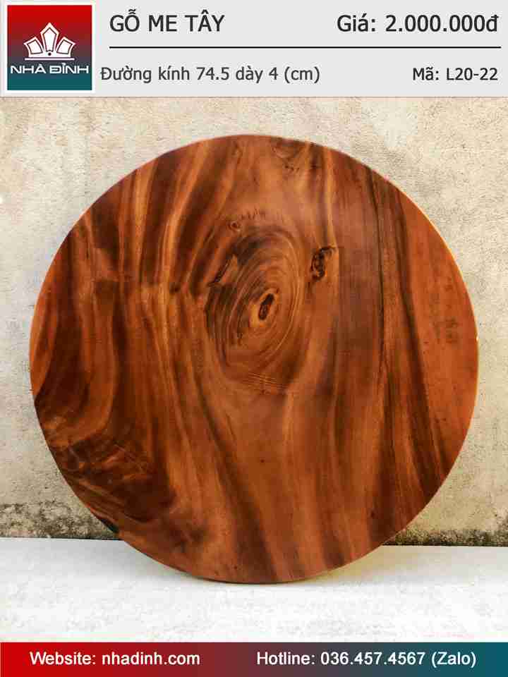 Mặt Bàn Tròn Gỗ Me Tây Nguyên Khối Đường Kính 74.5 Dày 4 (cm)