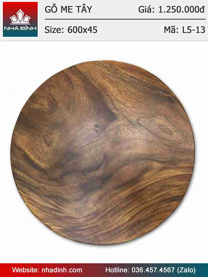 Mặt bàn tròn gỗ Me Tây nguyên tấm đường kích 60 dày 4,5cm