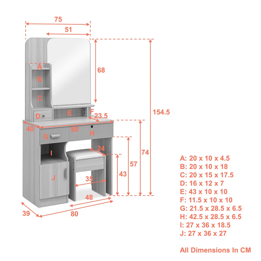 Bàn Trang Điểm Gỗ MDF Cao 154,5 Ngang 80 Rộng 39 (cm)