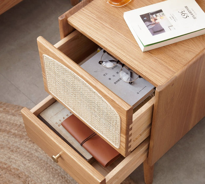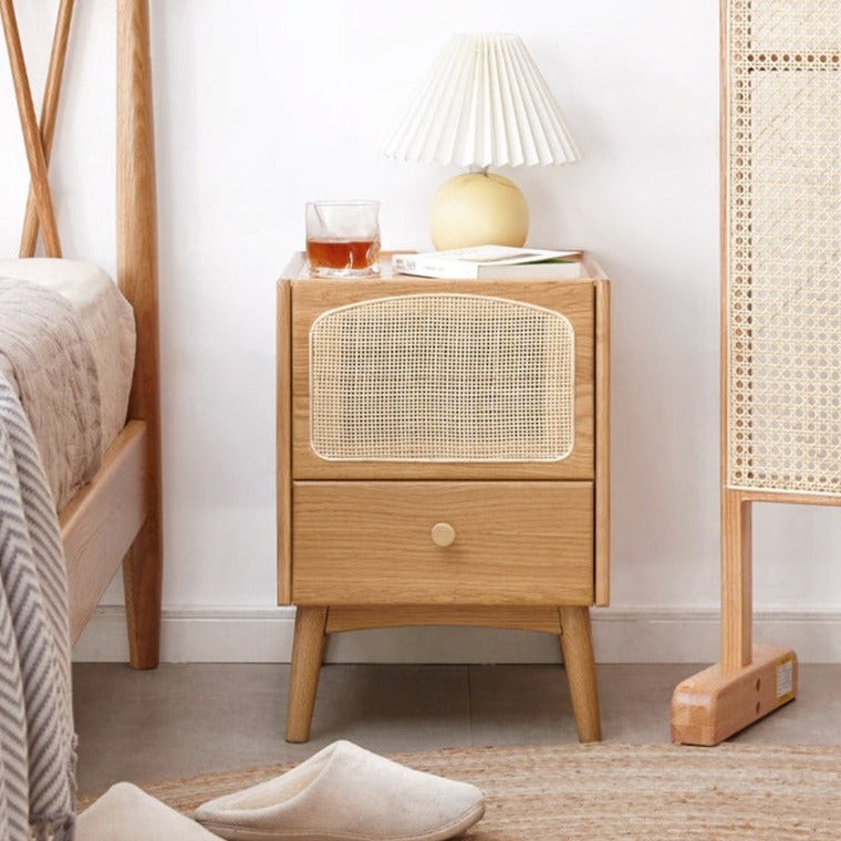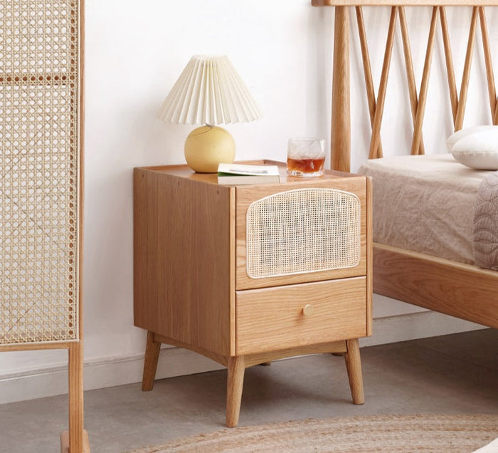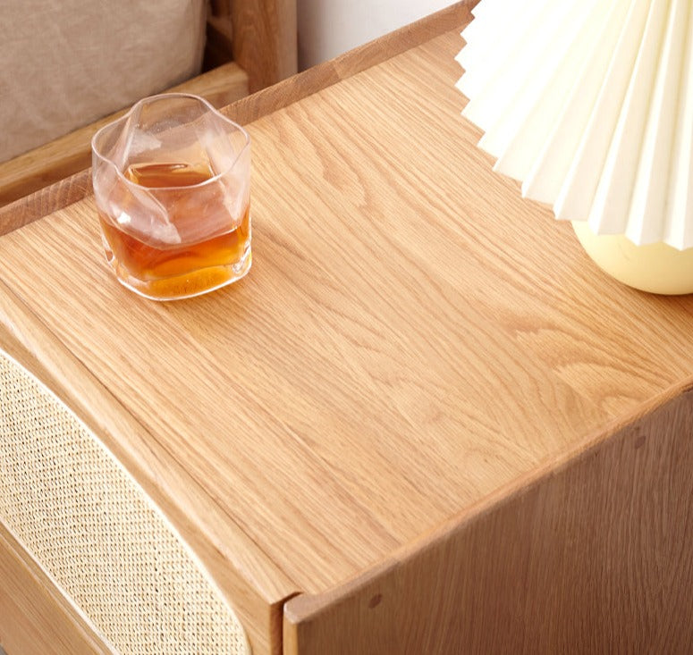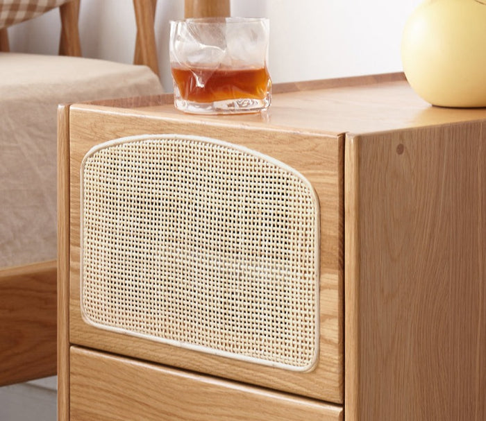 Tủ Đầu Giường Gỗ Sồi Kết Hợp Mây