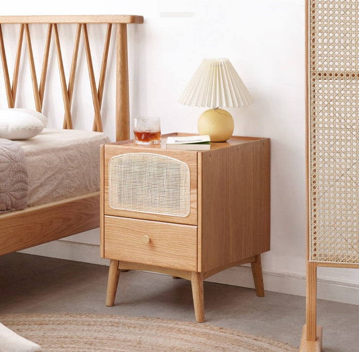 Tủ Đầu Giường Gỗ Sồi Kết Hợp Mây Rộng 35 Sâu 45 Cao 50 (сm)