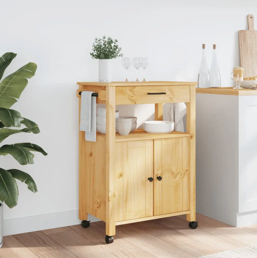 Tủ Đựng Vật Dụng Nhà Bếp Có Bánh Xe Gỗ Thông