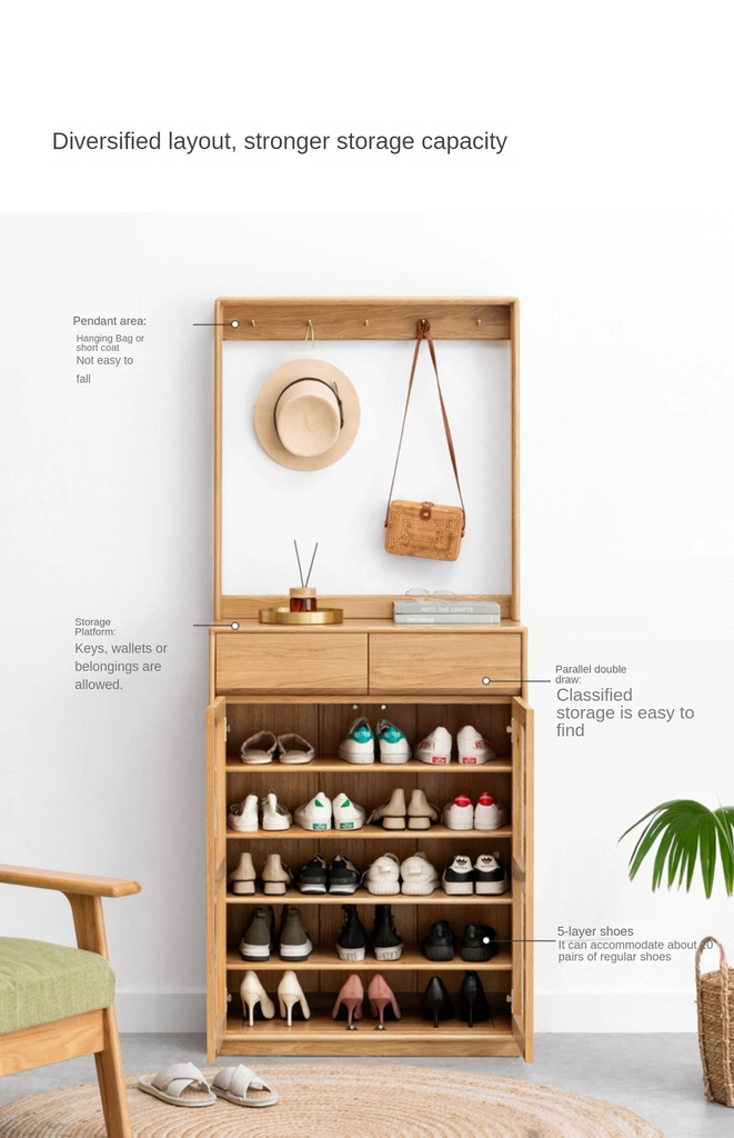 Tủ Giày Kết Hợp Lưới Mây Gỗ Sồi Rộng 80 Sâu 35 Cao 107 (cm)