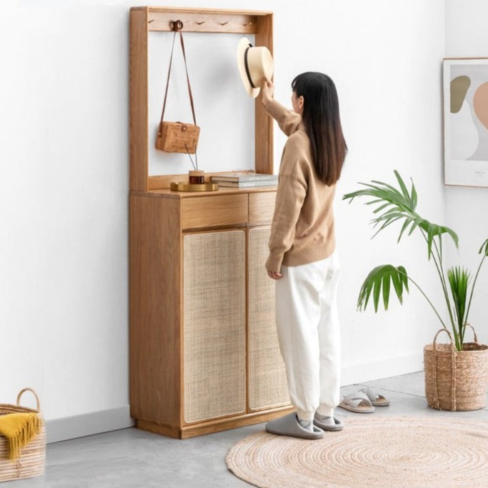 Tủ Giày Kết Hợp Lưới Mây Gỗ Sồi