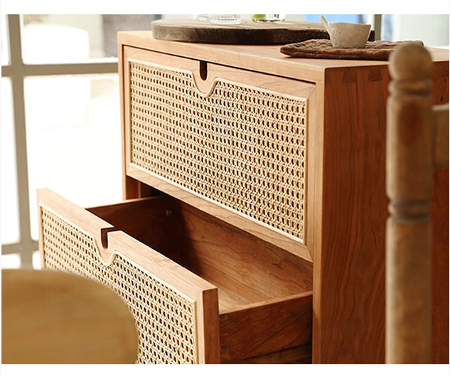 Chất liệu: Gỗ Sồi (Oak) + Mây + Venner Sồi